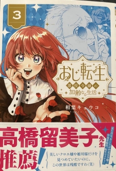 Rumiko Takahashi has written a comment for volume 3 of Uncle Reincarnation: The Aging Life of a Villainous Lady (おじ転生~悪役令嬢の加齢なる生活~) by Kyoko Aiba. Of the reincarnation comedy that finds a beautiful villain reincarnated as a middle aged uncle Takahashi-sensei wrote: "I want to only gaze at the beautiful Miss Chloe and Lady Himekawa, but the world is cruel (laughs)." As thanks Aiba-sensei did a drawing for Takahashi-sensei which you can find in our Tribute Art section. Source: Uncle Reincarnation: The Aging Life of a Villainous Lady volume 3 obi